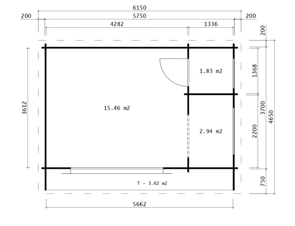 • Dør: 2800 x 1975 mm + 840 x 1965 - Indvendig dør