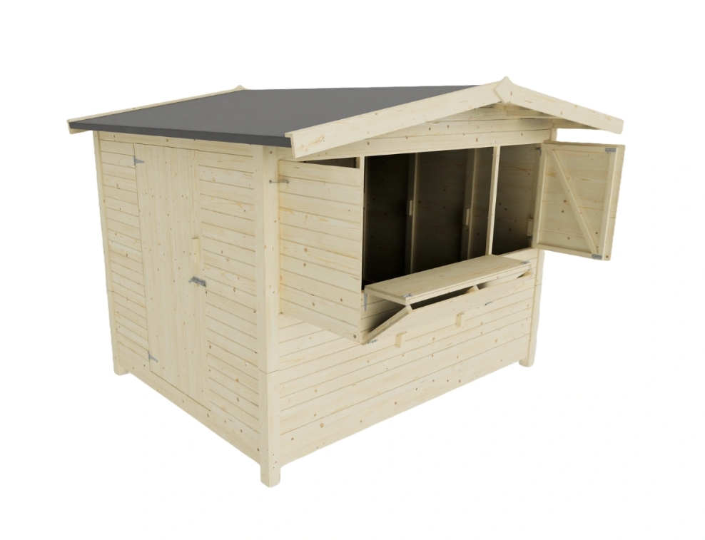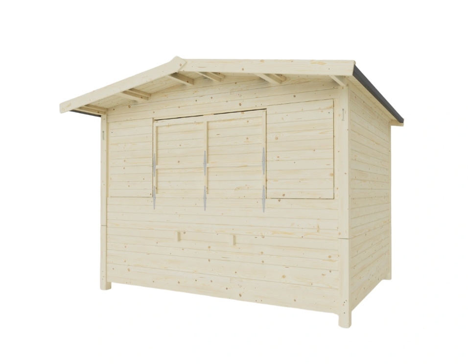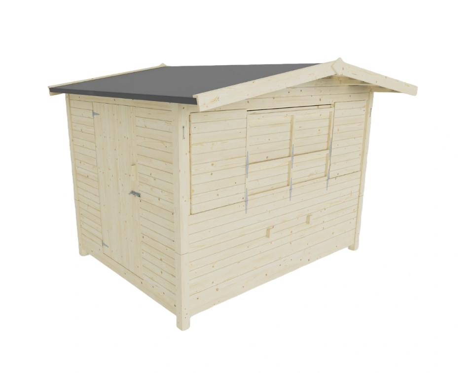 • Huset leveres i ubehandlet træ og bør behandles efter opførelse