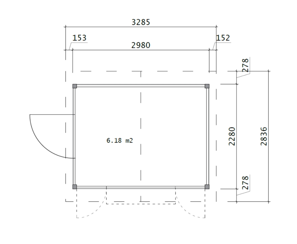 • Væglængde: 298 x 228 cm