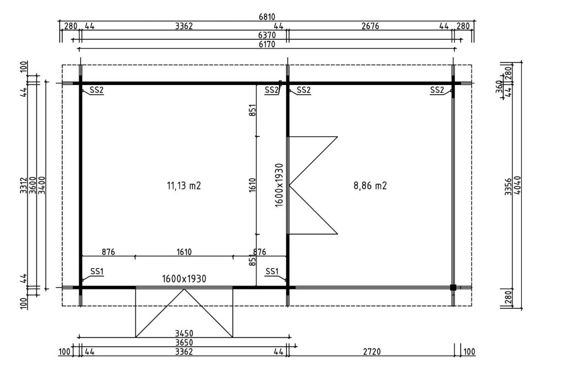 • Væglængde: 617 x 400 cm