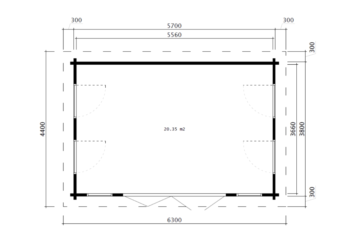 • Væglængde: 570 x 380 cm