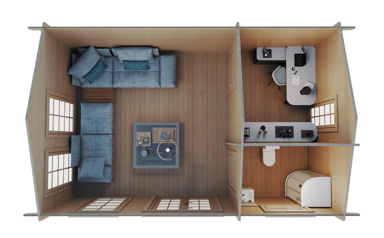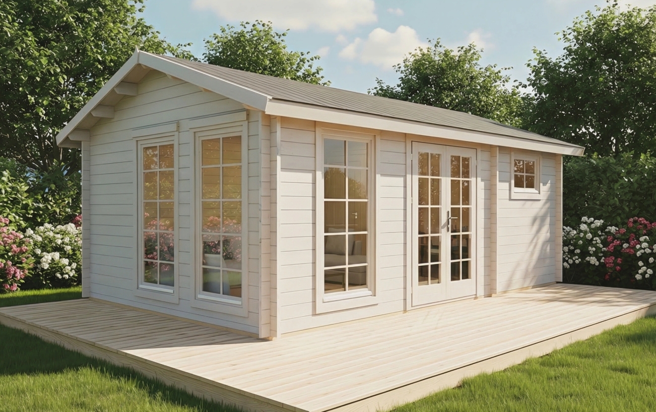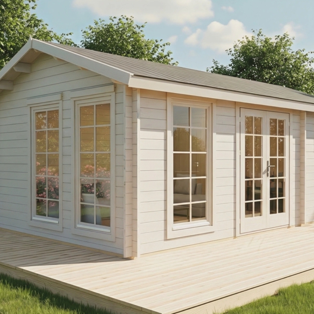 • Huset leveres i ubehandlet træ og bør behandles efter opførelse