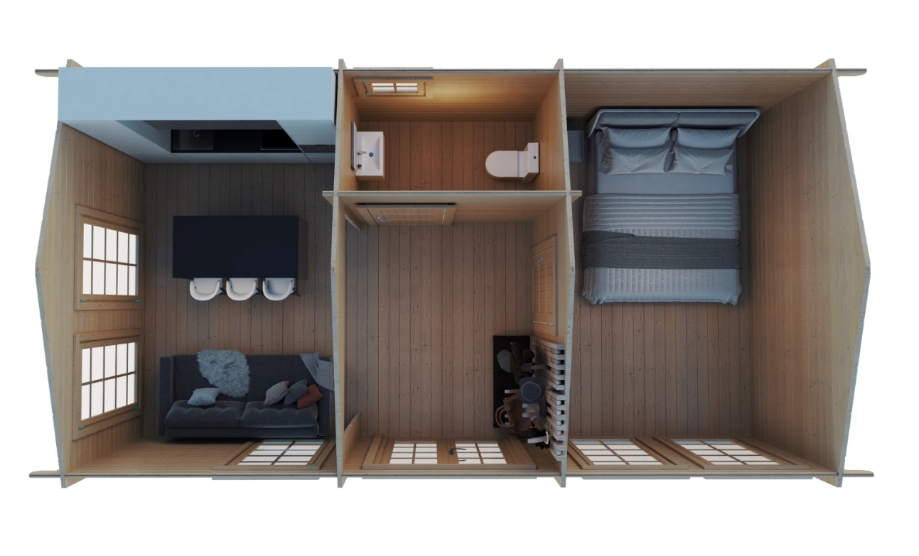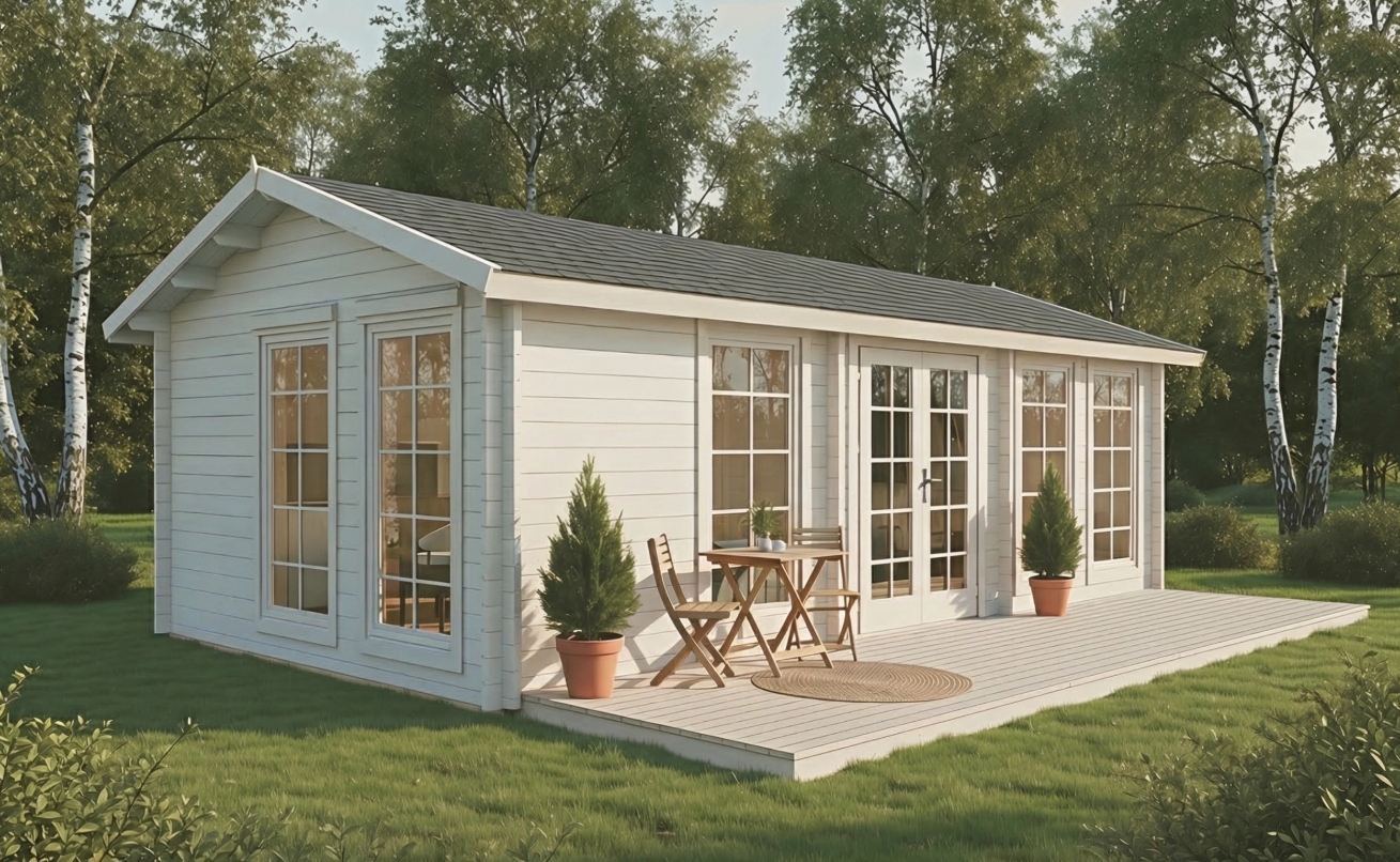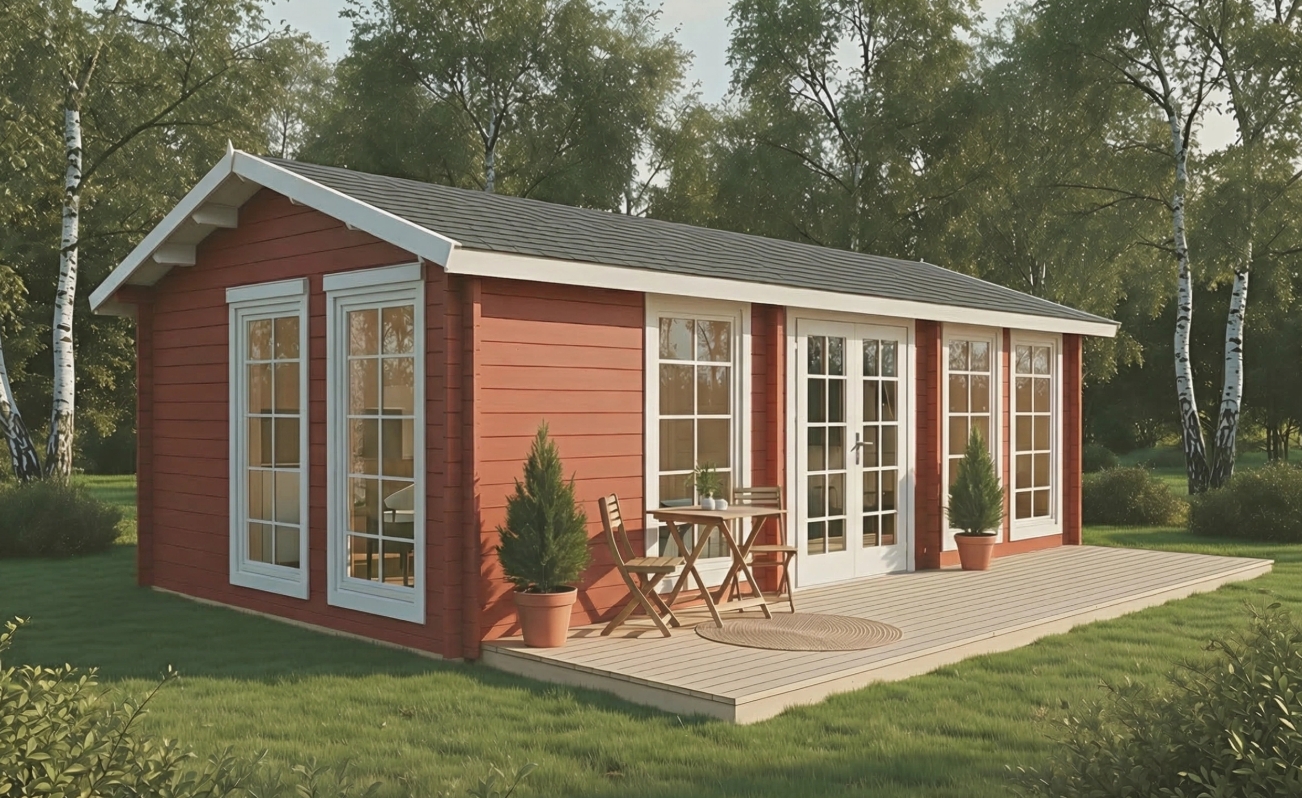 • Huset leveres i ubehandlet træ og bør behandles efter opførelse