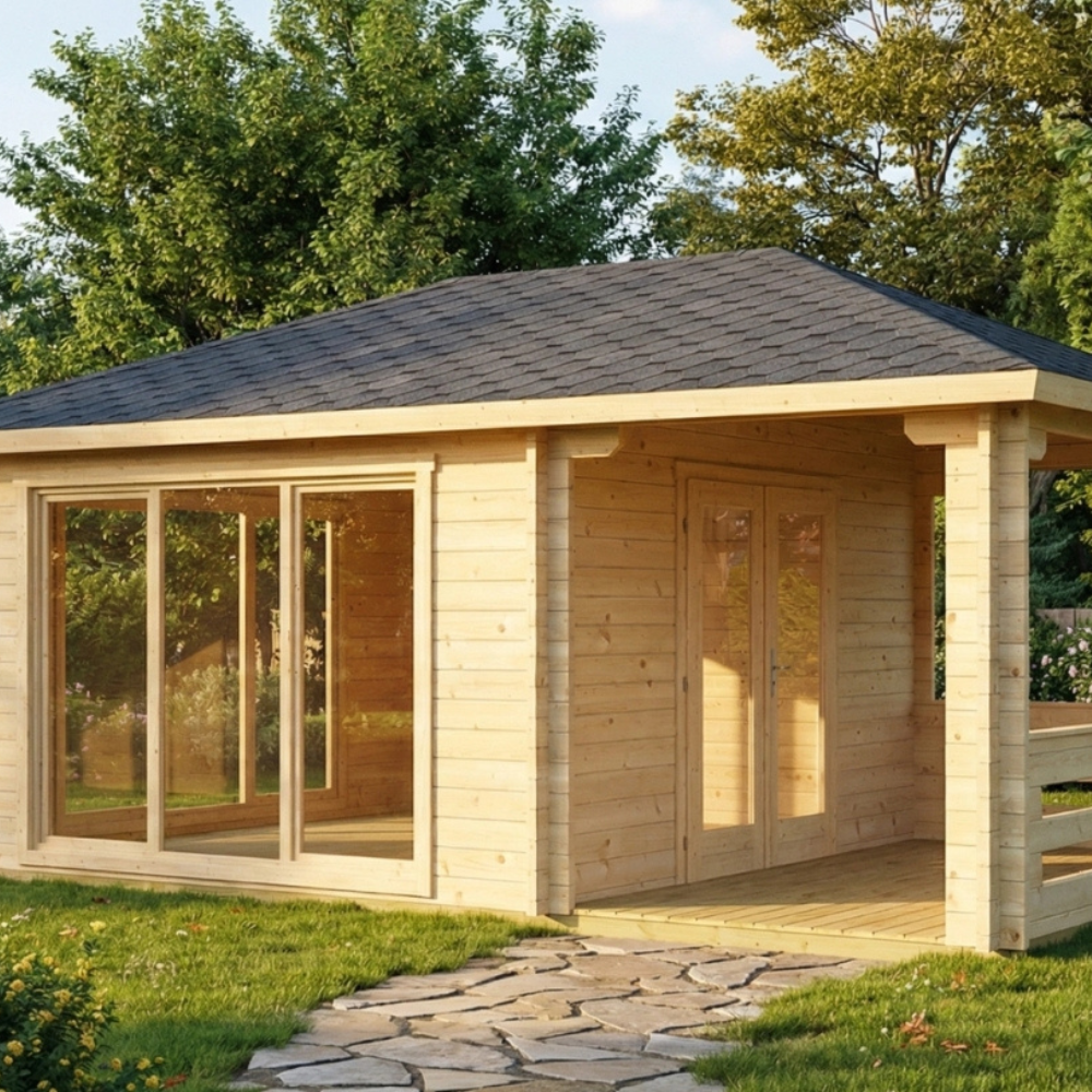 • Huset leveres i ubehandlet træ og bør behandles efter opførelse