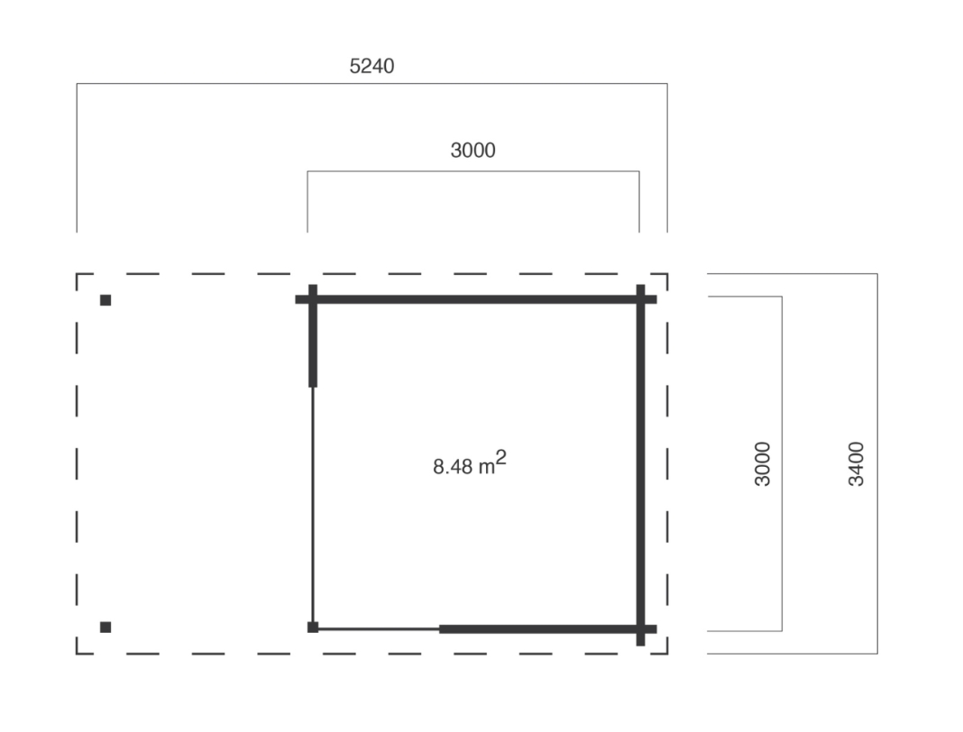 • Væglængde: 300 x 300 cm