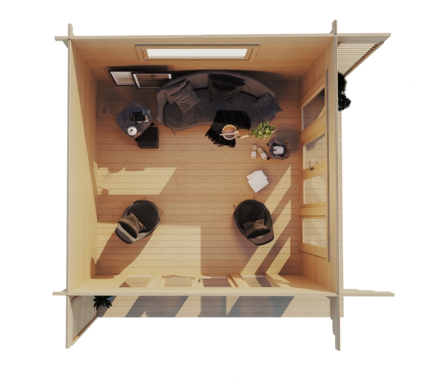 • Huset leveres i ubehandlet træ og bør behandles efter opførelse
