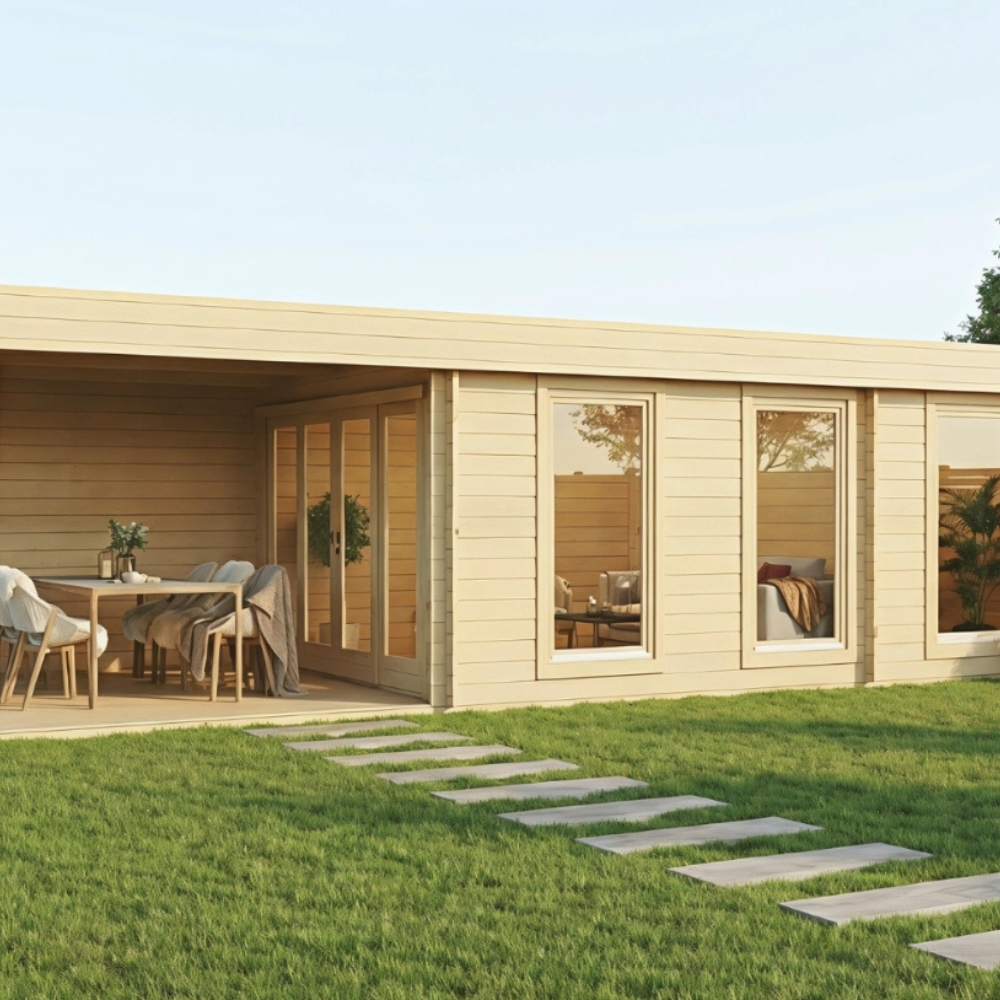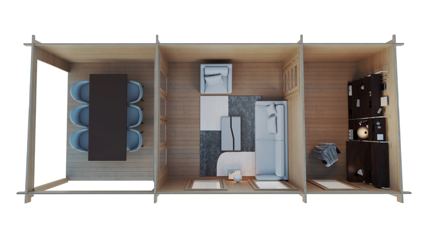 • Huset leveres i ubehandlet træ og bør behandles efter opførelse