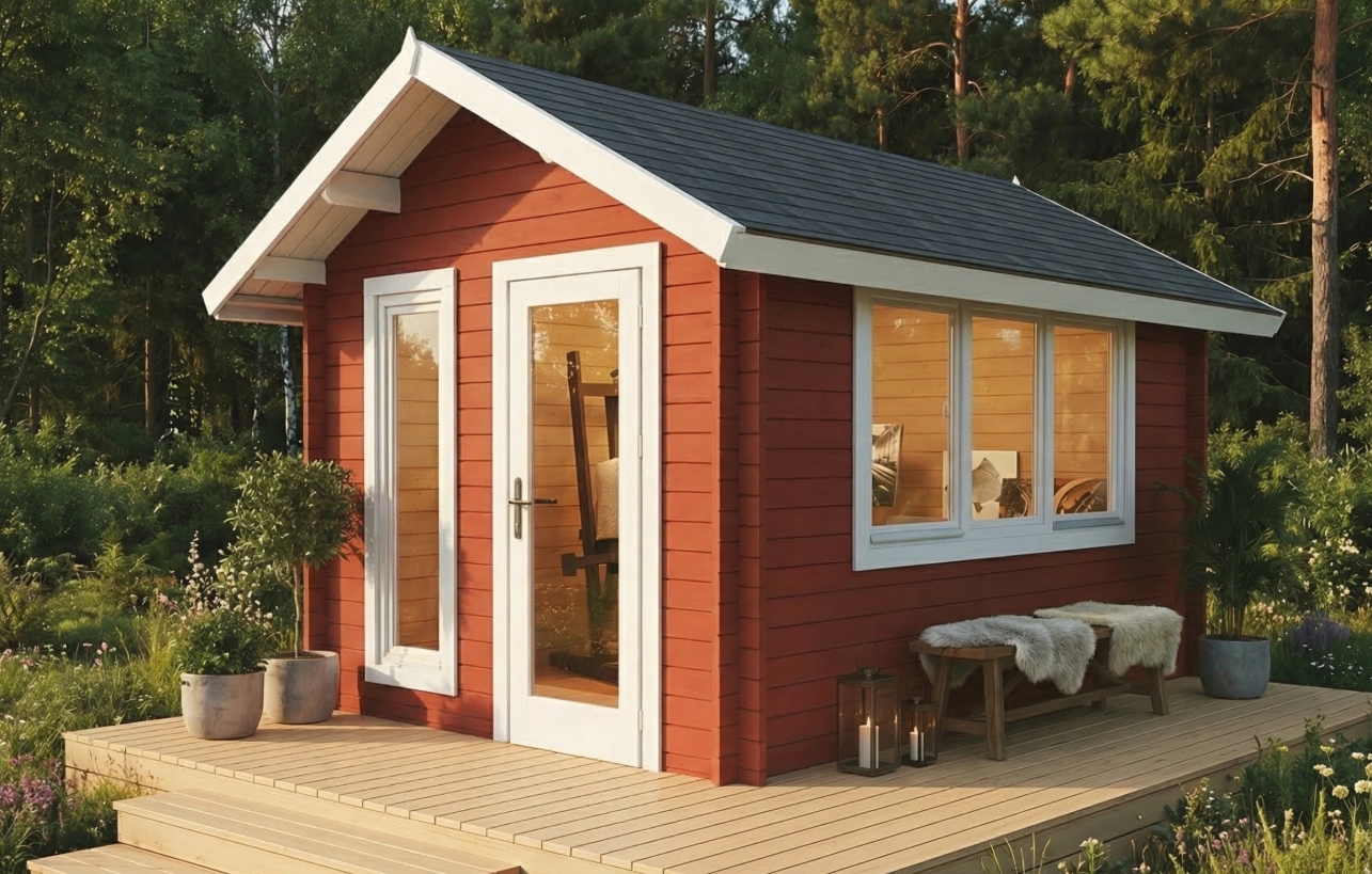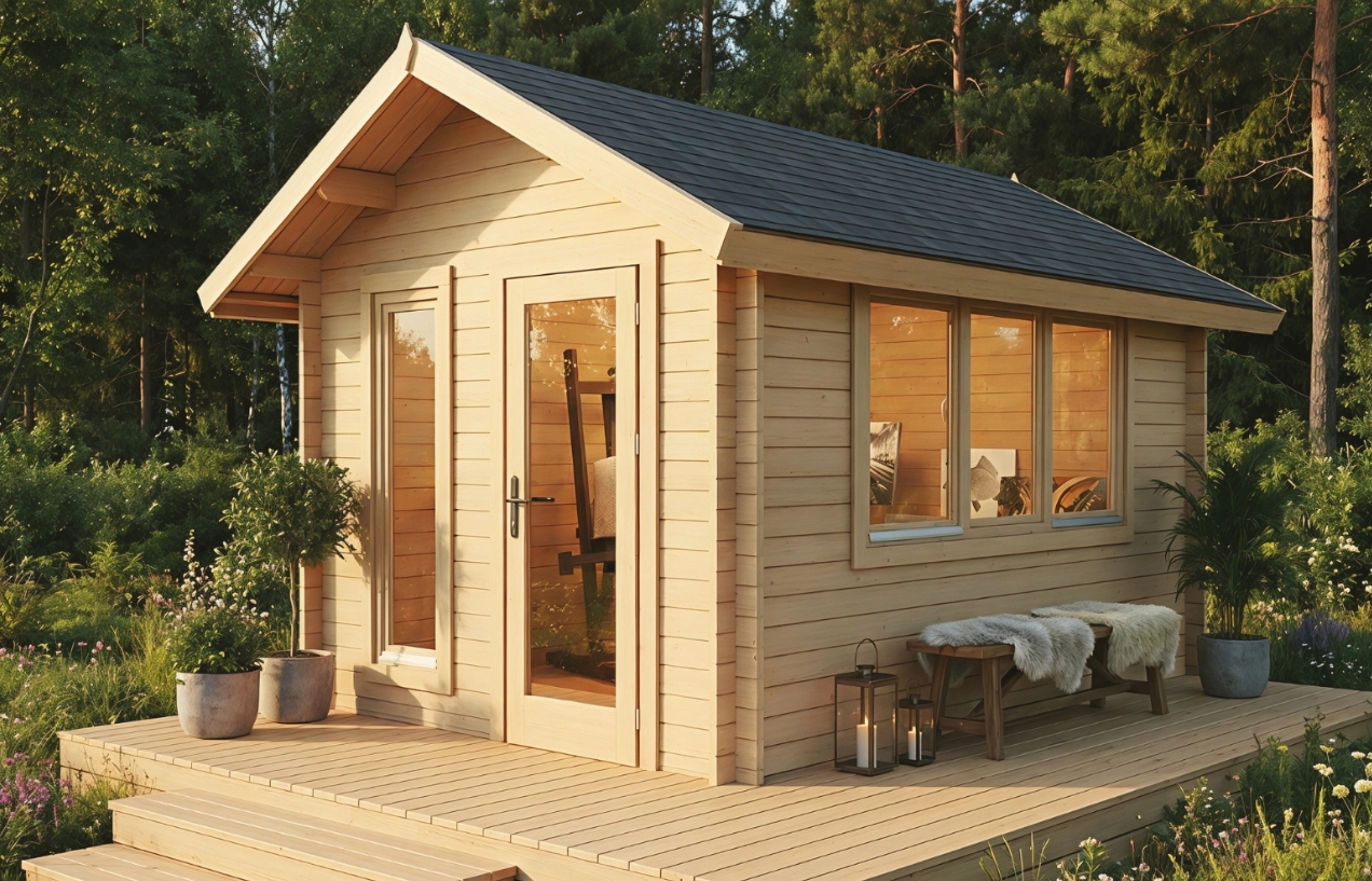 • Huset leveres i ubehandlet træ og bør behandles efter opførelse