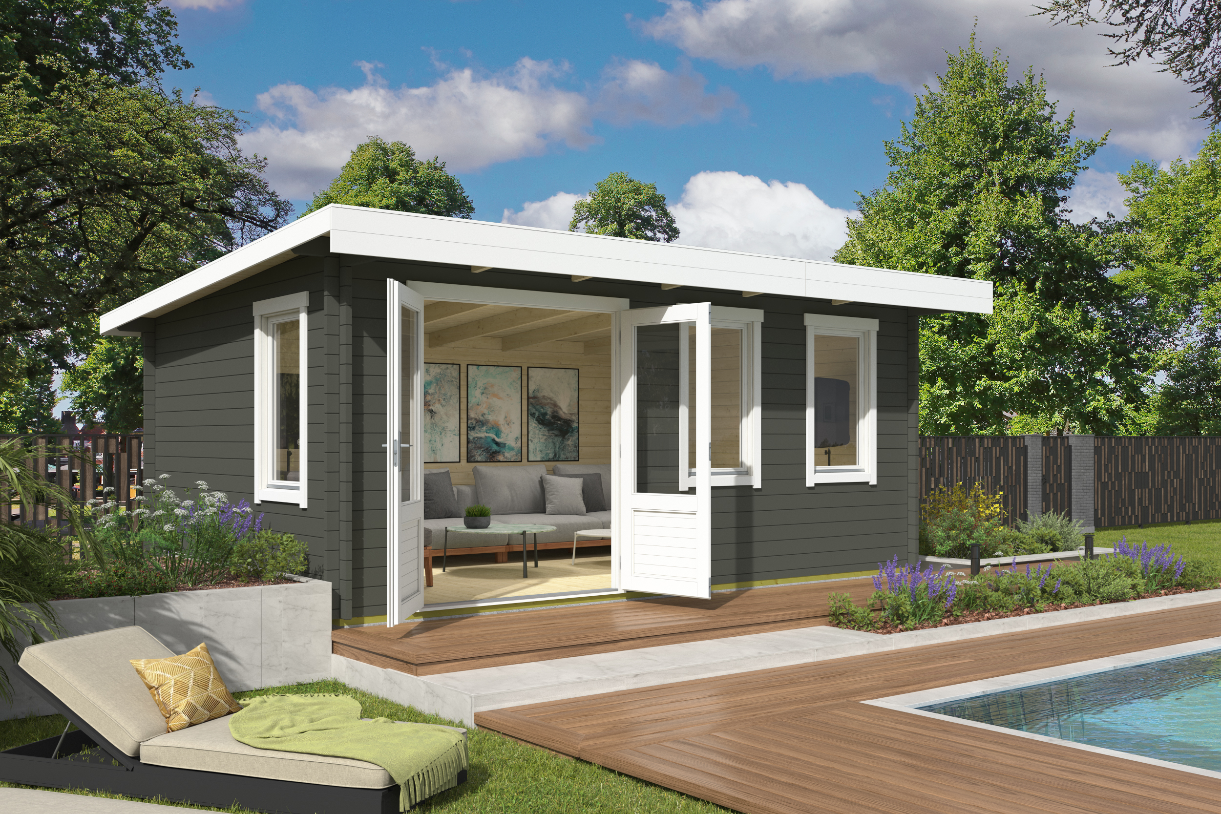 Greve Havehus er et rummeligt og moderne havehus på 16,16 m² med et stilrent fladt tag, der giver et enkelt og elegant udtryk. Det rene design gør huset nemt at placere i haven og passer både til nye og mere klassiske omgivelser.
