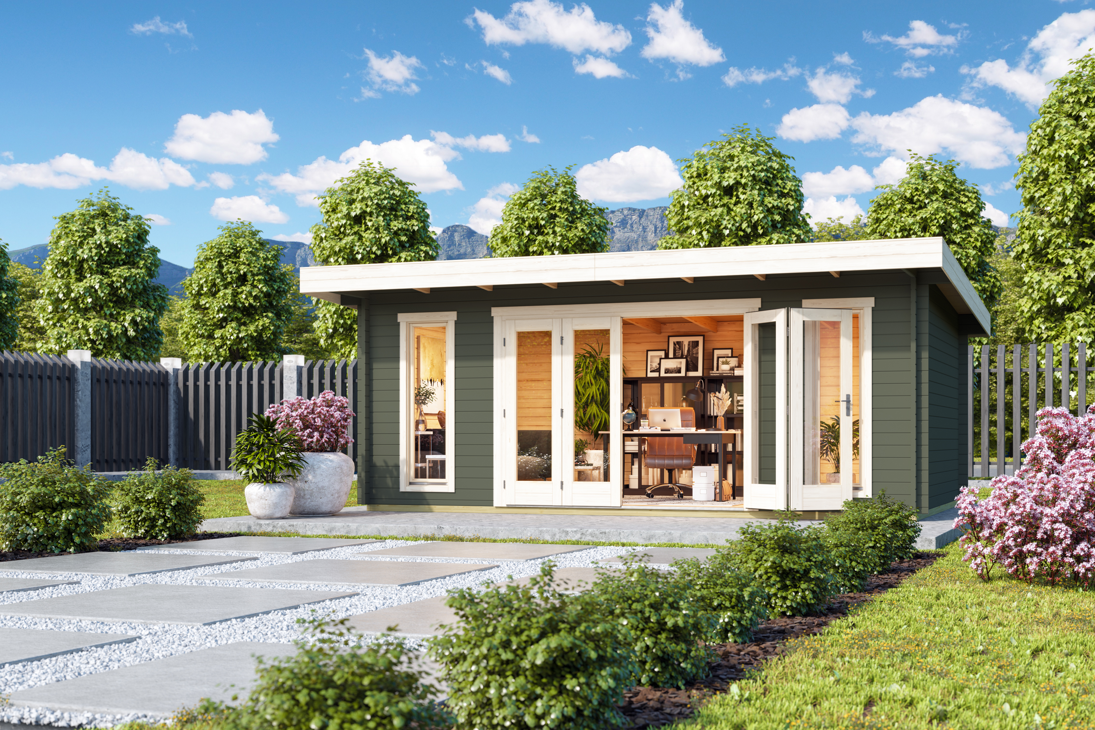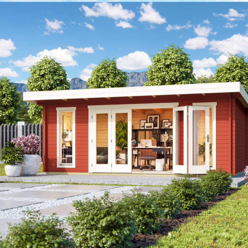 Jelling Havehus er et stilrent og indbydende havehus på 19,71 m², hvor funktionalitet og moderne design går hånd i hånd. Det flade tag med bagudgående hældning giver huset et roligt og nutidigt udtryk, som falder naturligt ind i haven.