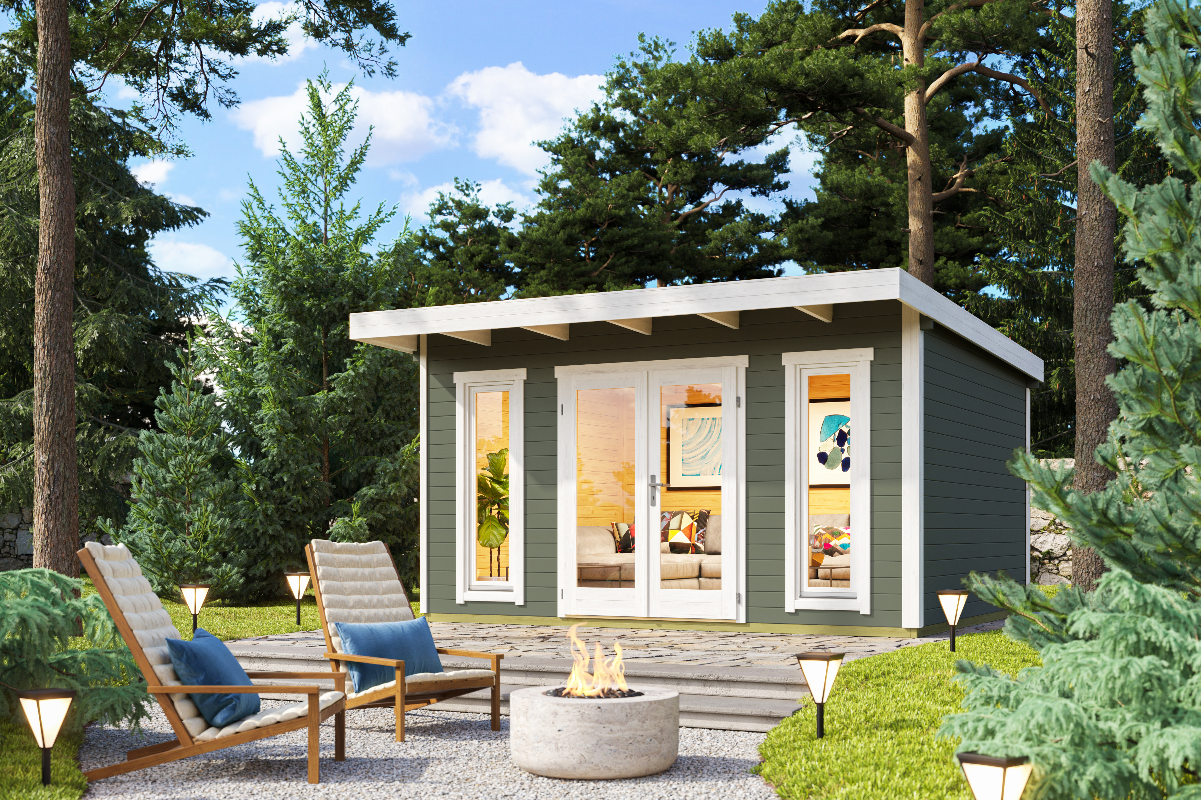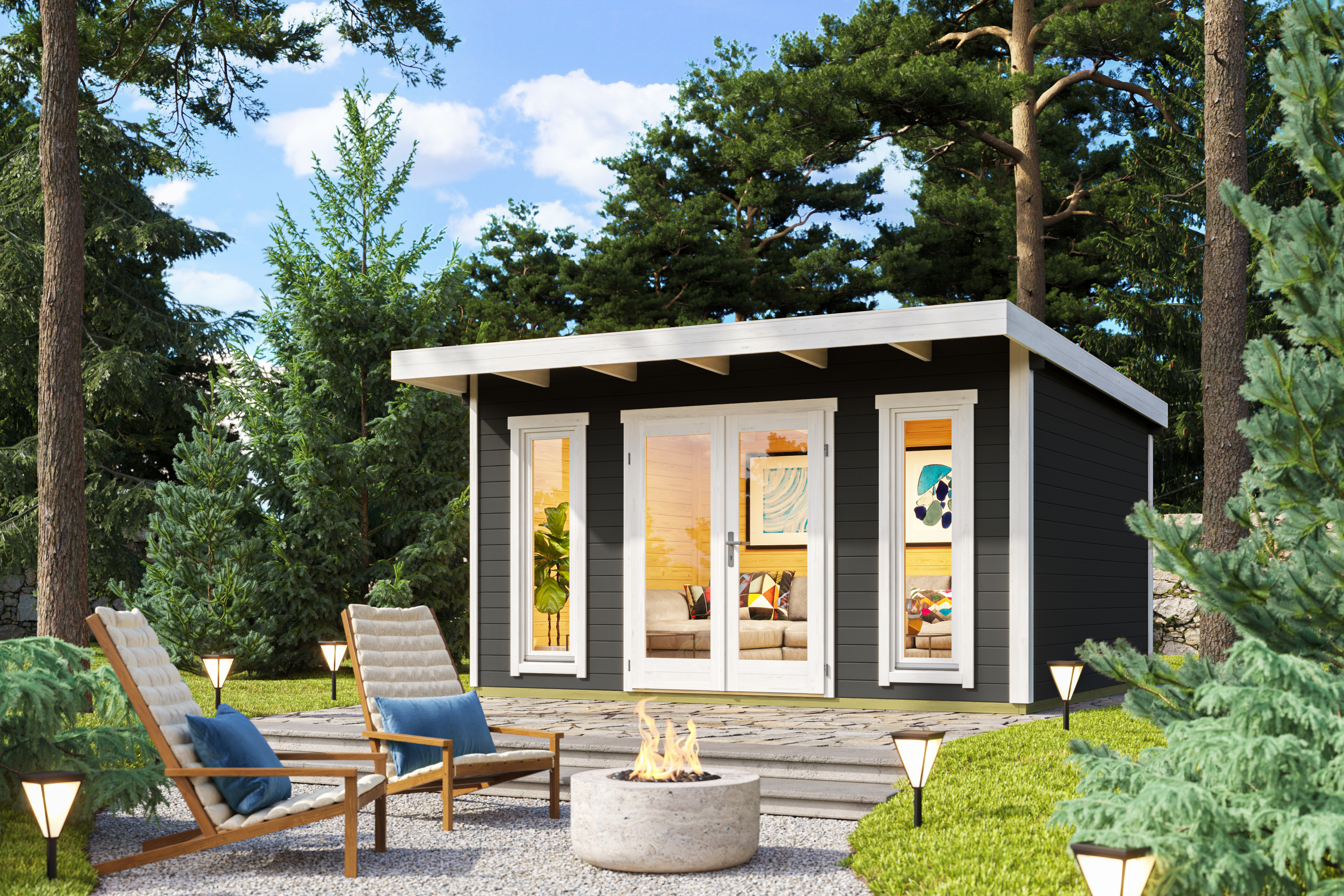 Hemmet Havehus er et indbydende og stilrent havehus, der kombinerer moderne linjer med en hyggelig atmosfære. Det flade tag med bagudgående hældning giver huset et roligt og tidssvarende udtryk, som passer smukt ind i havens omgivelser.