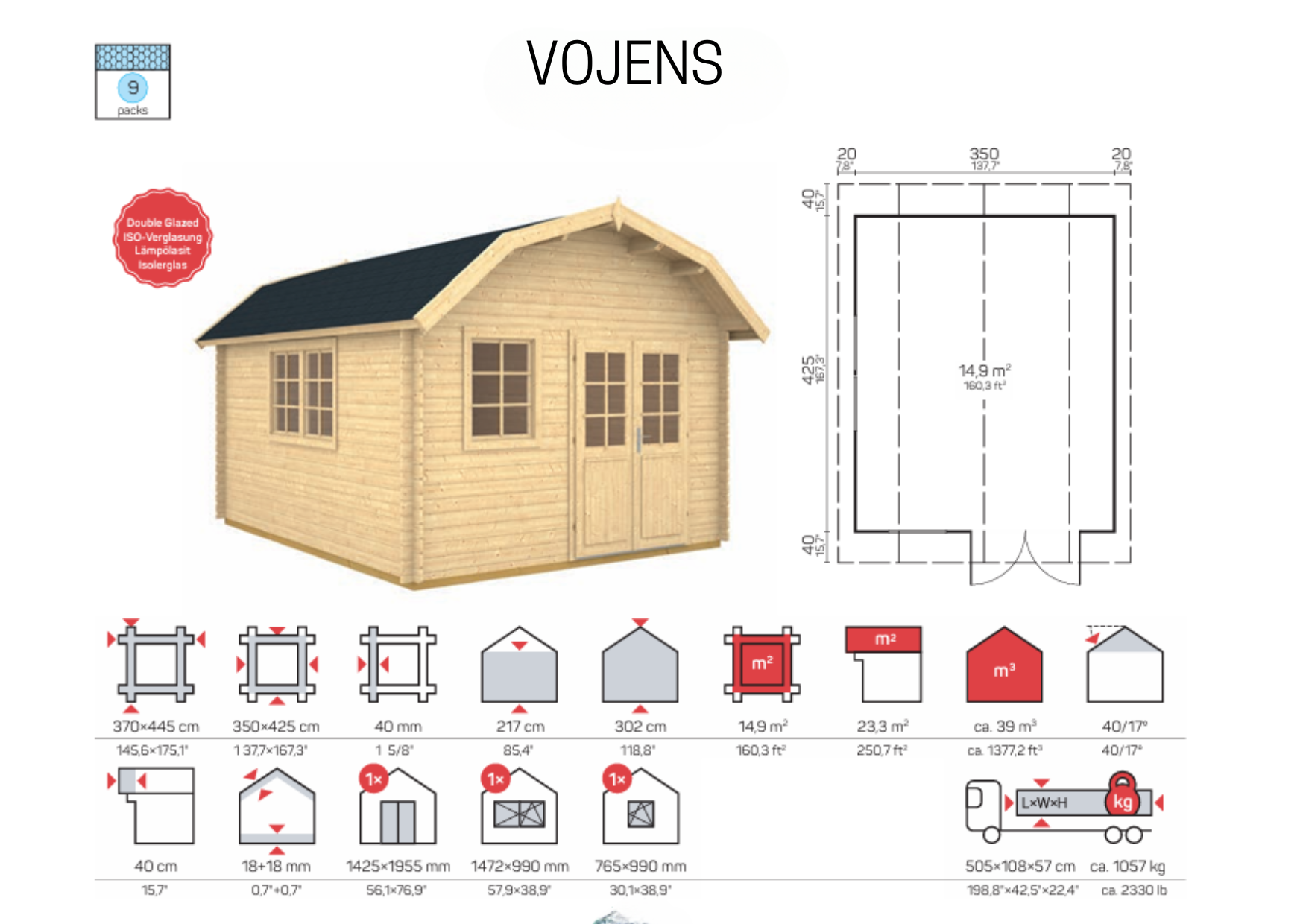 • Dør: 1425 x 1955 mm