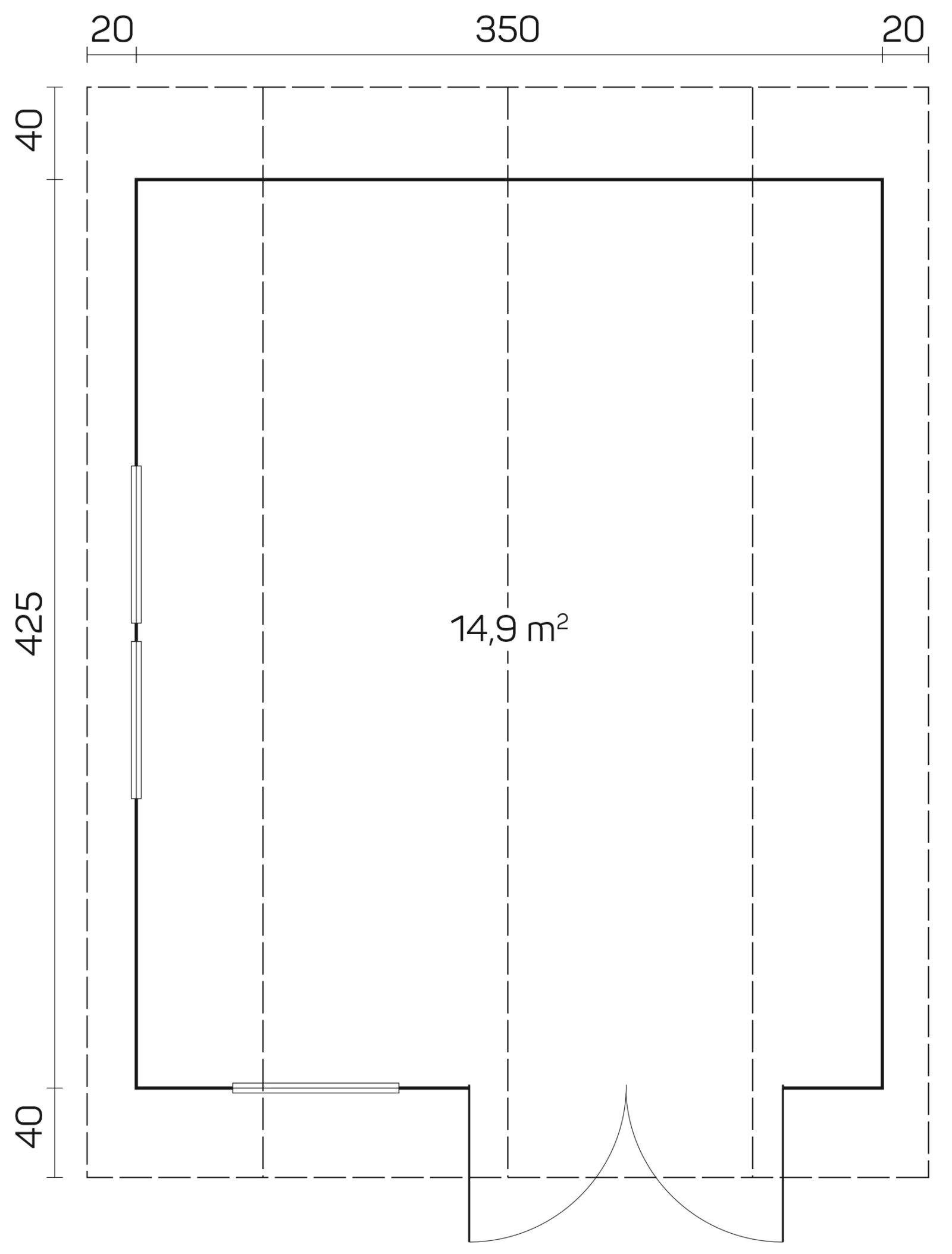 • Væglængde: 350 x 425 cm