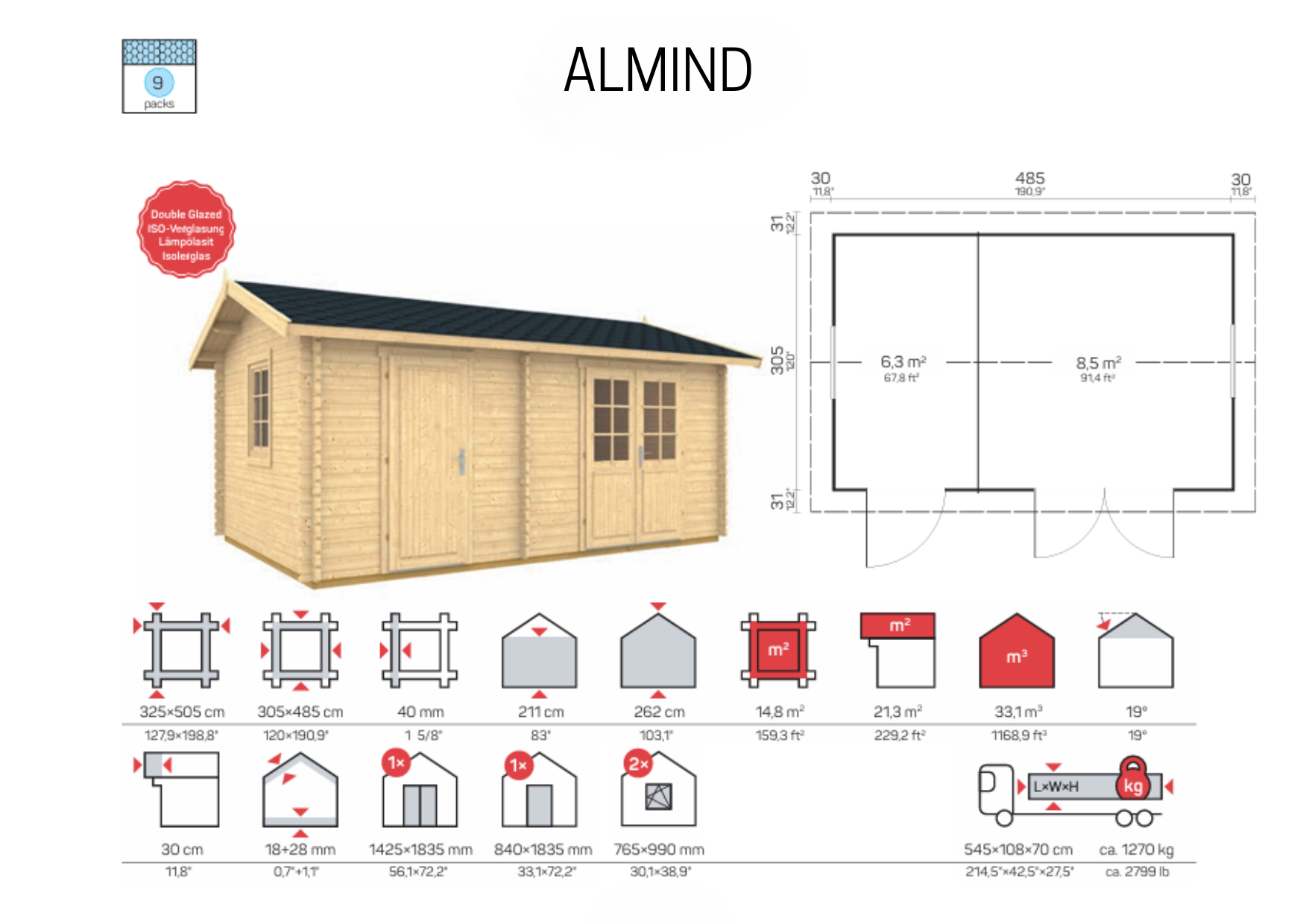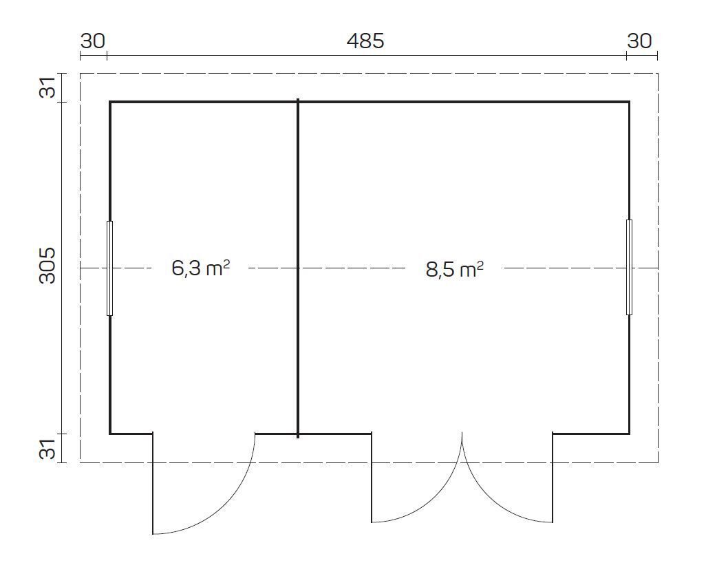 • Væglængde: 305 x 485 cm