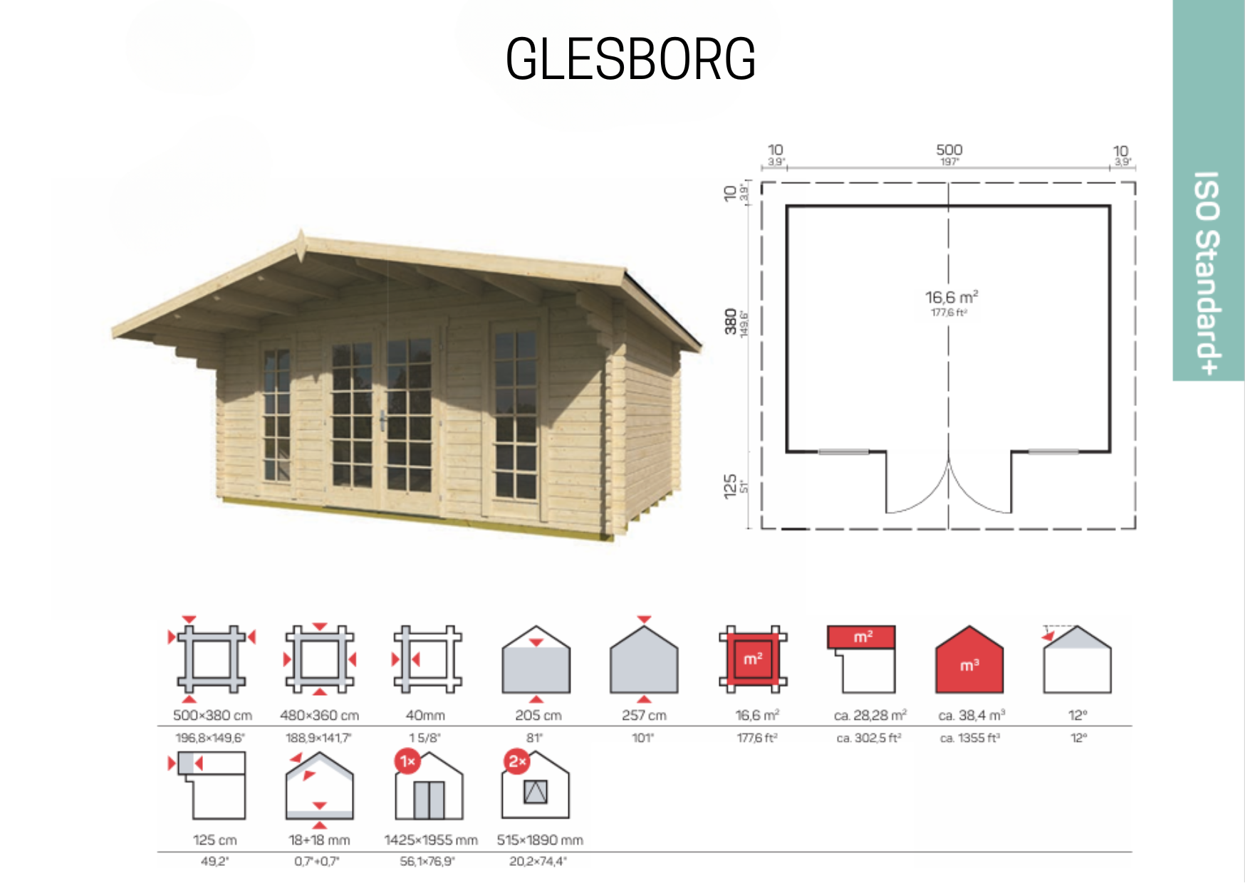 Glesborg Havehus giver ægte bjælkehusstemning i haven. Med sine 16,6 m² er der god plads til at indrette som gæstehus, hobbyrum eller blot et hyggeligt opholdssted. Det brede udhæng på 125 cm giver huset karakter og skaber en naturlig overgang mellem ude og inde, hvor du kan sidde i læ og nyde udsigten til haven.