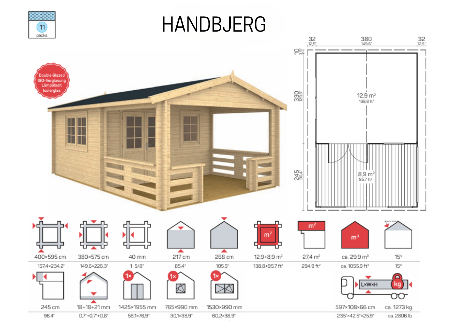 Handbjerg Havehus er et klassisk og charmerende havehus, der kombinerer funktionalitet med hyggeligt design. Selve huset er på 12,9 m² og giver god plads til gæster, hobby eller afslapning. Foran ligger en dejlig overdækket terrasse på 8,9 m², perfekt til sommerdage i skyggen eller hyggelige aftener med familien.