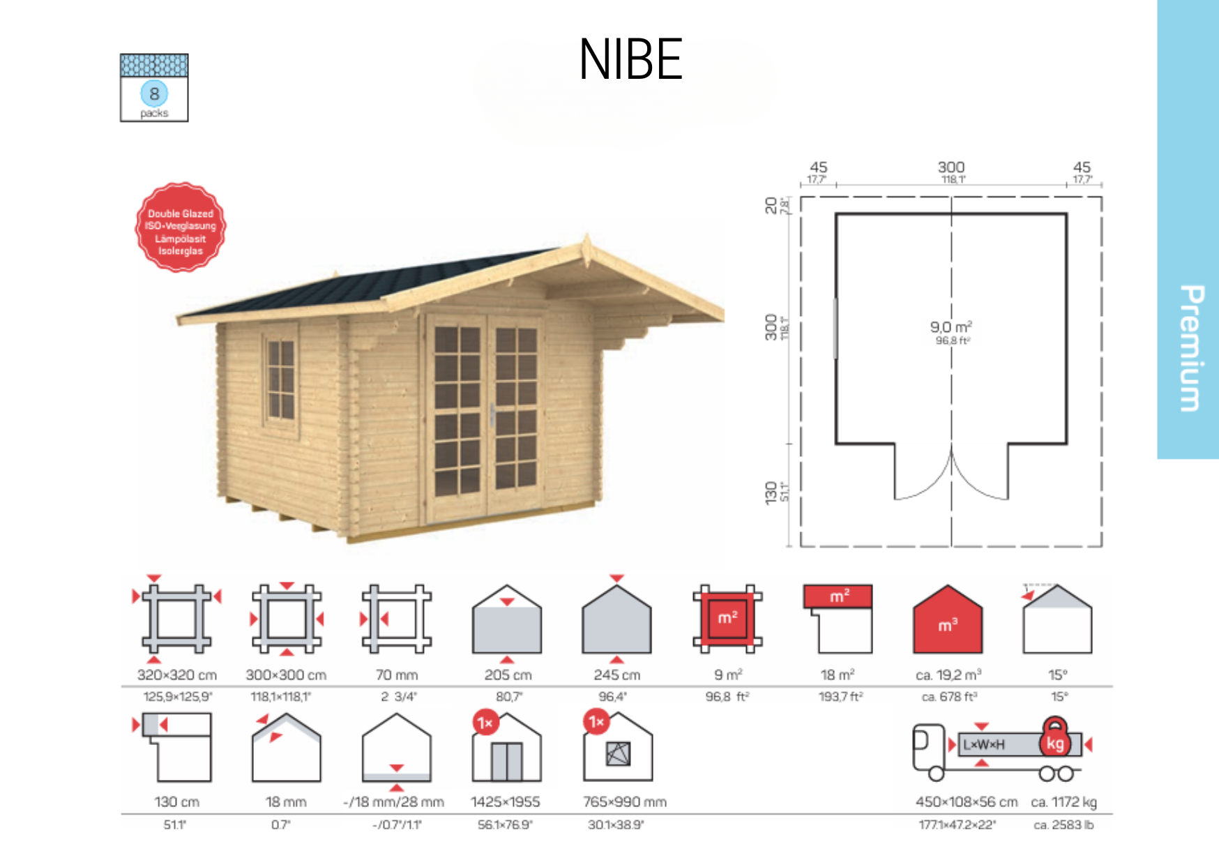 Nibe er et klassiske havehus på 9 m² kombinerer tidløst design med praktisk funktionalitet. Det brede udhæng på 130 cm beskytter indgang og facade mod regn og sol, samtidig med at det giver mulighed for at skabe en hyggelig overdækket zone foran huset – perfekt til en bænk, planter eller små aktiviteter udendørs.