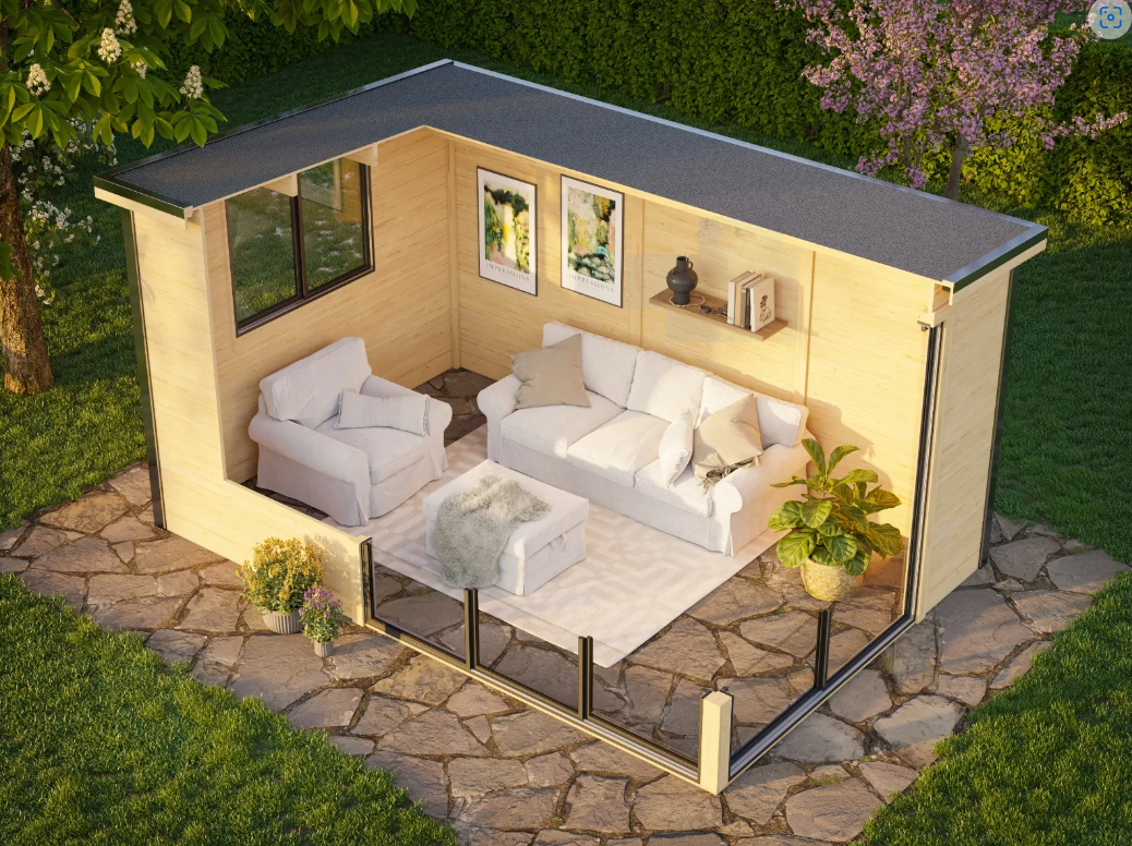 Mogenstrup Havehus er et lyst og moderne havehus på 12,7 m², skabt i ubehandlet træ, som giver dig friheden til selv at sætte dit præg med olie, maling eller bejdse. Huset har et fladt tag og store skydedøre på to sider, der mødes i hjørnet. Det giver en flot åbenhed og en unik fornemmelse af at trække haven helt ind i rummet.