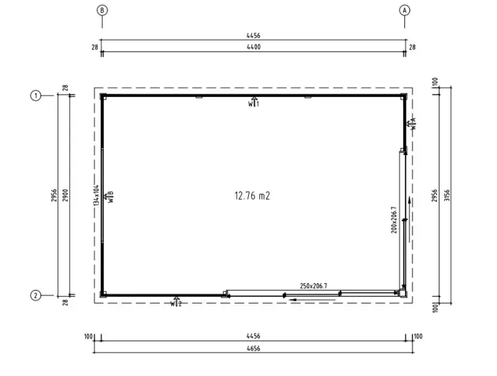 • Væglængde: 445,6 x 295,6 cm