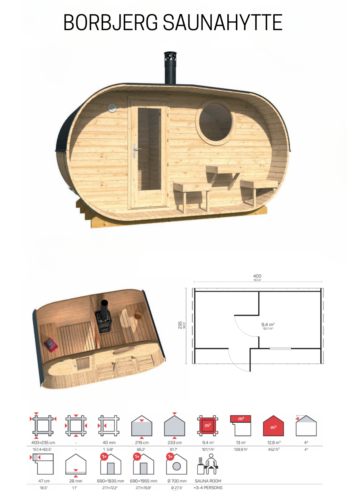 Hytten leveres i ubehandlet træ, så du selv kan vælge farve og finish, der passer til haven eller terrassen. Borbjerg Saunahytte er perfekt til wellness, afslapning og hyggelige stunder med familie og venner året rundt.