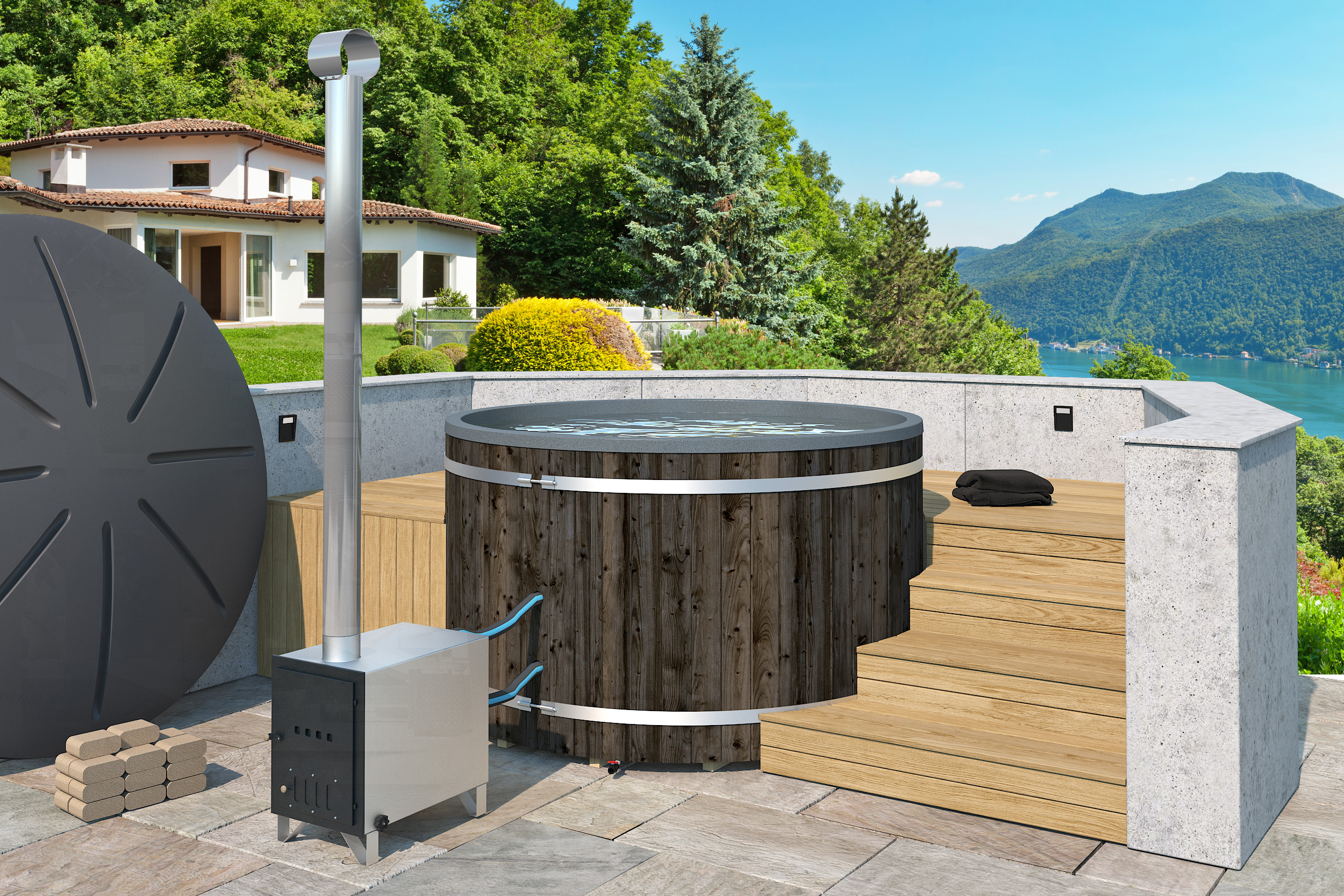 Det runde design skaber en hyggelig og naturlig atmosfære i haven eller på terrassen. Svaneke Vildmarksbad er perfekt til wellness, samvær og hyggestunder året rundt.