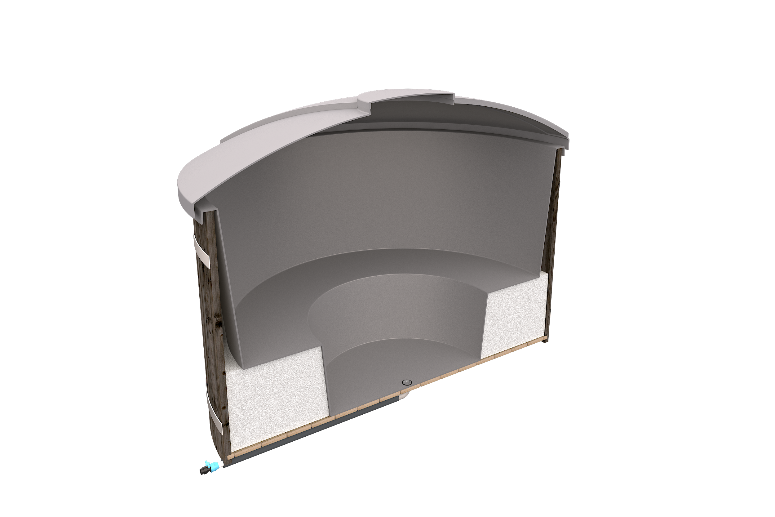 Svaneke Vildmarksbad – træbad med gråt kar og låg, Ø207 cm