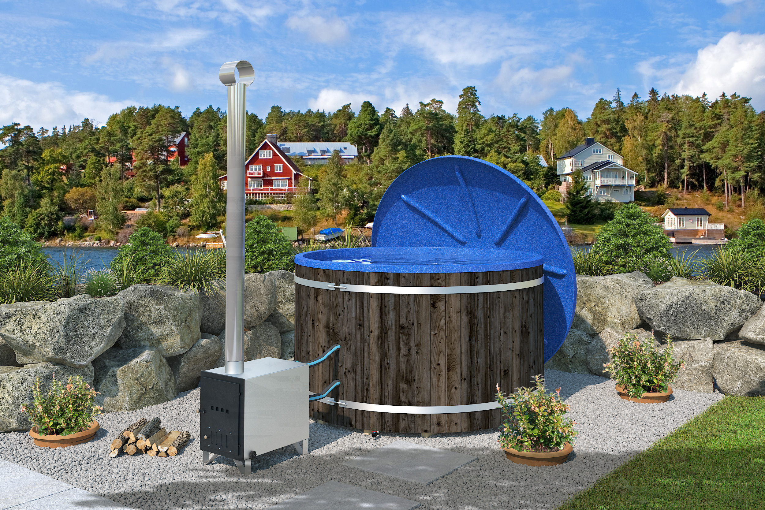 Det runde trædesign skaber en hyggelig og naturlig atmosfære i haven eller på terrassen. Gudhjem Vildmarksbad er perfekt til samvær, wellness og hyggelige stunder året rundt – alene eller med familie og venner.