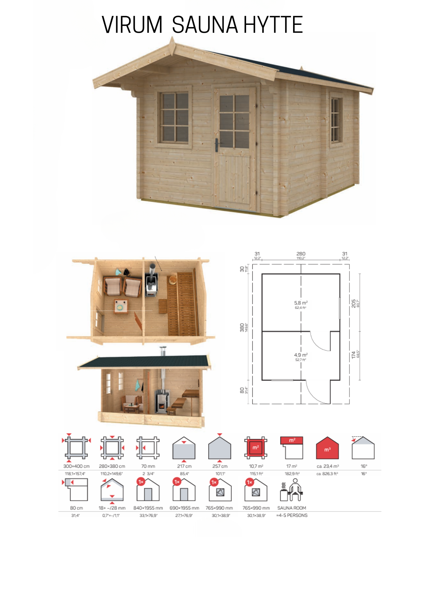 Det separate omklædningsrum giver komfort og privatliv, så saunaoplevelsen bliver helt uforstyrret. Hytten leveres i ubehandlet træ, så du selv kan vælge farve og finish, der passer til din have eller terrasse. Virum Saunahytte er perfekt til wellness, hyggestunder og samvær med familie og venner – året rundt.