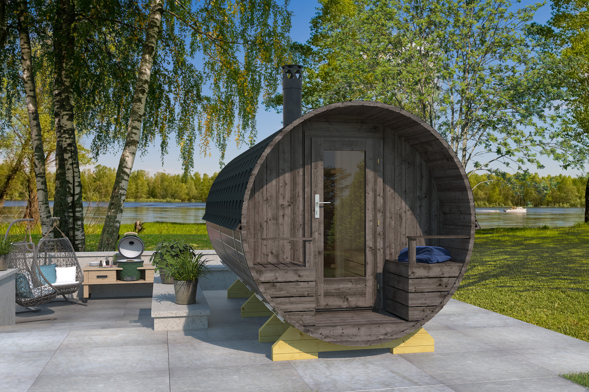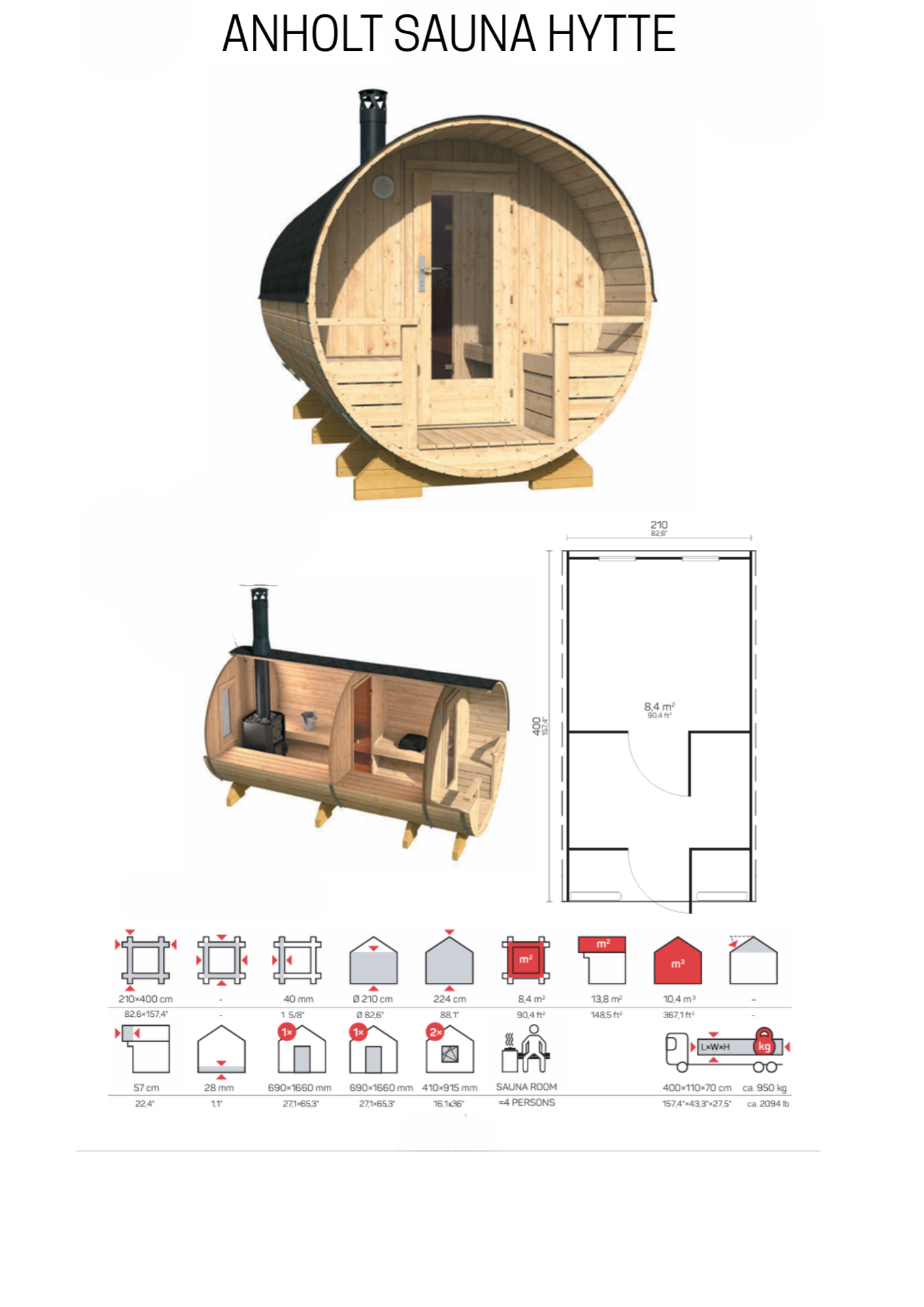 Hytten leveres i ubehandlet træ, så du selv kan vælge farve og finish, der passer til haven eller terrassen. Anholt Saunahytte er perfekt til afslapning, wellness og hyggelige stunder med familie og venner.