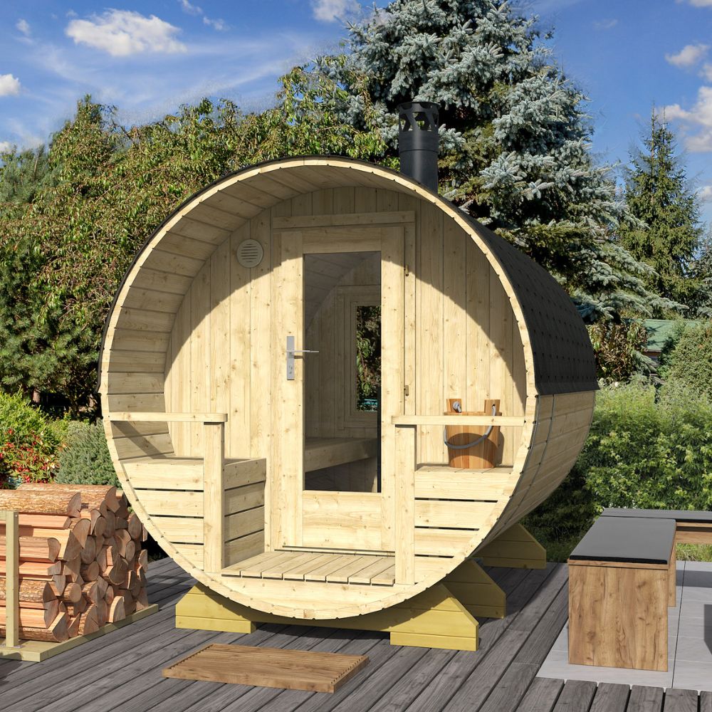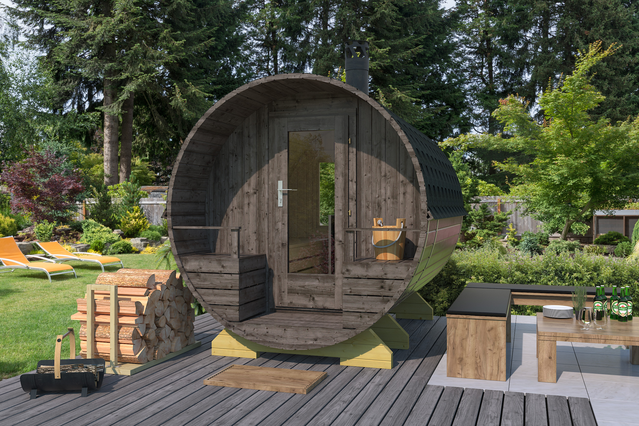 Hytten leveres i ubehandlet træ, så du selv kan vælge farve og finish, der passer til haven eller terrassen. Skals Saunahytte er perfekt til afslapning, wellness og hyggelige stunder med familie og venner